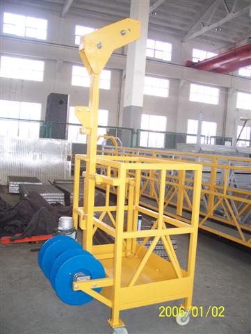 When the steel wire rope is broken ,blocked ,slip out of he hoist or the working platform inclines,the safey lock will lock the rope within 100mm, this safety device is high advanced in China now .